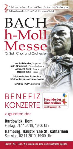 Beide Konzerte sind für die „Freunde der Kinderklinik der UK Eppendorf e.V.“. Dieser Verein unterstützt seit Jahren die Kinderabteilung der Klinik, in der demenzkranke Kinder behandelt werden. 2018 erhielt eine der zwei Schwestern, die aus den Spenden des Vereins bis Anfang 2019 bezahlt wurden, den BAMBI für „Stille Helden“.