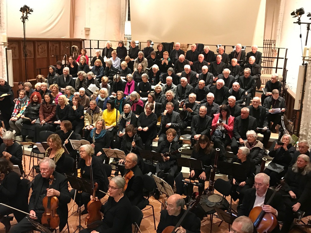 angereist waren. Es spielten und sangen alle - auch die rund 35 neu hinzugekommenen Musiker*innen - auf einem so hohen Niveau, dass die Proben dieses anspruchvollen Werks am Mittwoch und Donnerstag